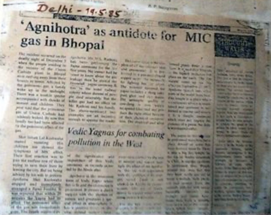 While doing research on the effectiveness of different methods for the de-calcification and transmutation of the pineal gland in relation to meditation, I stumbled across the two families that survived the Bhopal gas tragedy in India on the night of December 3rd, 1984 — and who claimed to be doing regular Agni Hotra since 19713.